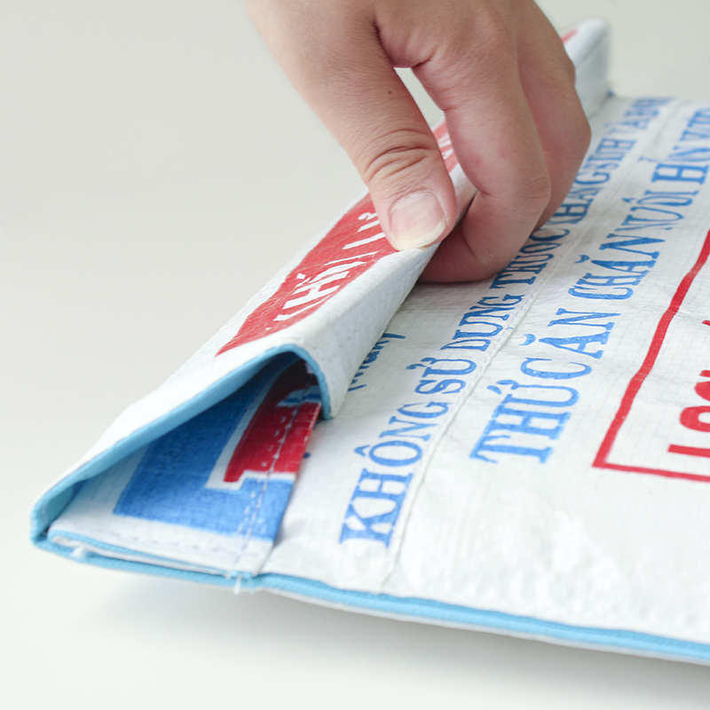 ファスナー、マジックテープを使わず、折り込んで閉じます。スムースな挿し込みでしっかりホールドします。