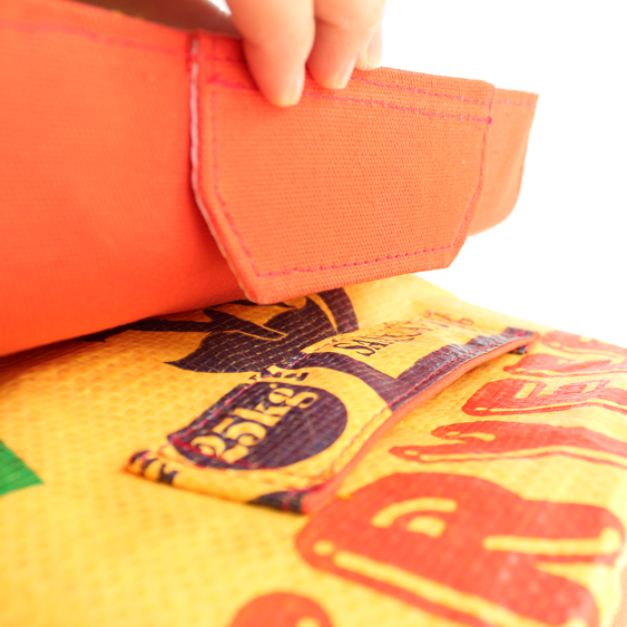 ファスナー、マジックテープを使わず、折り込んで閉じます。