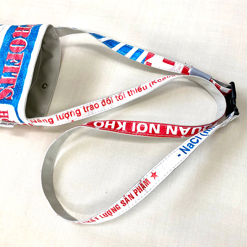バッグ本体はもちろん、細く仕上げたストラップもパッチワークでトータルコーディネート。バックルで脱着が容易なうえ、長さ調整もできます。
